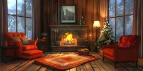 A Sanctuary of Warmth: A Cozy Living Room with a crackling Fireplace and Rich Woodwork