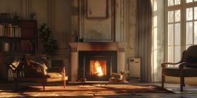A Sanctuary of Warmth: A Cozy Living Room with a crackling Fireplace and Rich Woodwork