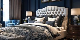 Luxurious Retreat: A Sumptuous Bedroom with Rich Wood Accents and Warm Lighting