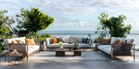 Architectural Design: A Luxurious Terrace with a Pergola and Ocean Views, Outdoor Living Space: A Spacious Patio with Comfortable Seating and Ocean Views