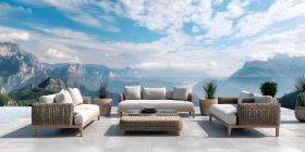 Architectural Design: A Luxurious Terrace with a Pergola and Ocean Views, Outdoor Living Space: A Spacious Patio with Comfortable Seating and Ocean Views