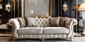 Interior Design: A Modern Living Room with a White Velvet Sofa and Gold Accents