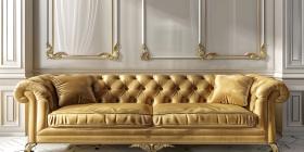 Interior Design: A Modern Living Room with a White Velvet Sofa and Gold Accents