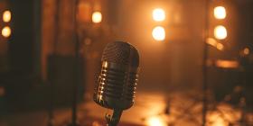Awaiting the Melody, A Vintage Microphone Stands Ready
