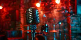 Awaiting the Melody, A Vintage Microphone Stands Ready
