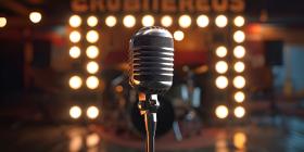 Awaiting the Melody, A Vintage Microphone Stands Ready