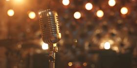 Awaiting the Melody, A Vintage Microphone Stands Ready