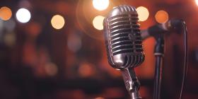 Awaiting the Melody, A Vintage Microphone Stands Ready