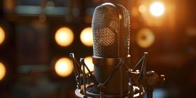 Awaiting the Melody, A Vintage Microphone Stands Ready