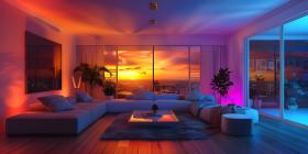 Eclectic Living Room with Vibrant Colored Lighting