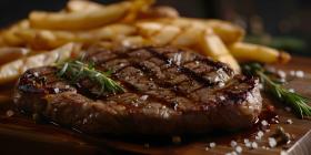 A Sizzling Steak Dinner Fit for a King, A Juicy Steak with Crispy Fries and Fresh Herbs