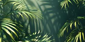 Sunlight Dappling Through Lush Palm Leaves, Tropical Shadows and Sunlight
