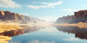 A Mirage in the Desert: An Oasis of Calm Amidst the Sands, Where Sand Meets Water: A Breathtaking Desert Landscape