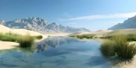 A Mirage in the Desert: An Oasis of Calm Amidst the Sands, Where Sand Meets Water: A Breathtaking Desert Landscape