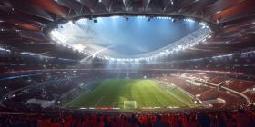 Awaiting the Roar of the Crowd: A Modern Sports Stadium Under a Clear Sky