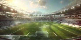 Awaiting the Roar of the Crowd: A Modern Sports Stadium Under a Clear Sky