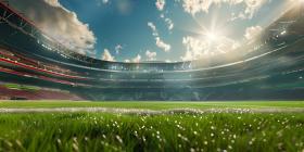 Awaiting the Roar of the Crowd: A Modern Sports Stadium Under a Clear Sky
