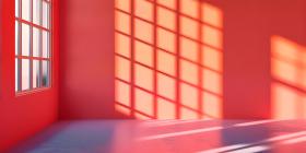 Sunlight Embrace: A Red Room Bathed in Warm Light, The Dance of Light and Shadow: A Playful Red Interior