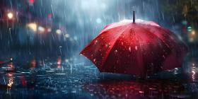 A Dash of Red in the Night: A Lonely Umbrella in the Rain