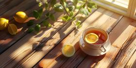 A Sunlit Moment: Lemon Tea and Warmth on a Wooden Table