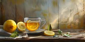 A Sunlit Moment: Lemon Tea and Warmth on a Wooden Table