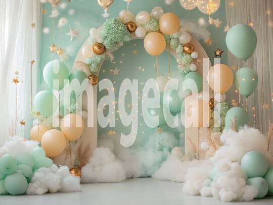 CB0002 - Pastel Blue Gold Balloon Celebration (11)- Destiny Backdrops