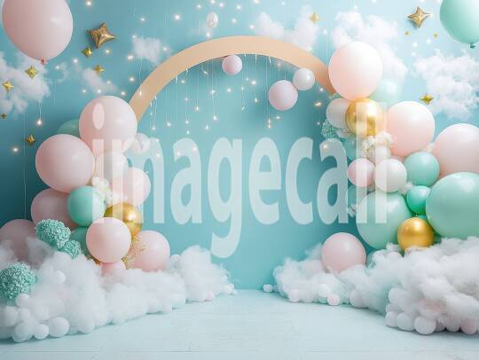CB0002 - Pastel Blue Gold Balloon Celebration (13)- Destiny Backdrops