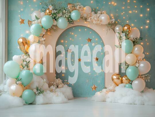 CB0002 - Pastel Blue Gold Balloon Celebration (15)- Destiny Backdrops