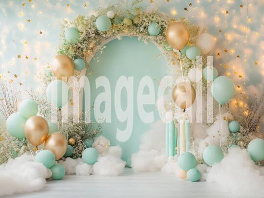 CB0002 - Pastel Blue Gold Balloon Celebration (20)- Destiny Backdrops